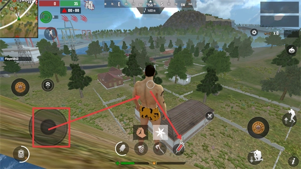 1、通过左下角的移动轮盘操控角色前往建筑区域,利用下方的【医疗道具】保持角色状态,并且留意上方的倒计时以及【小地图】上的区域提示信息。