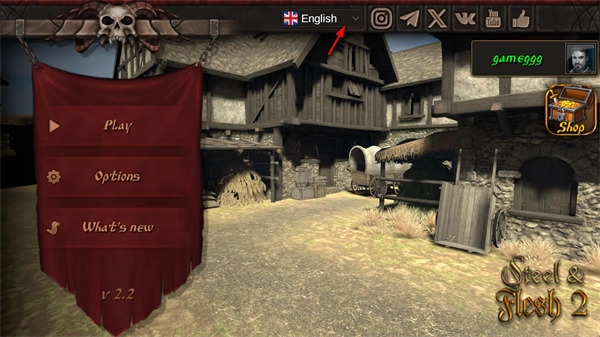 1、进入游戏后点击主界面上方的English按钮。