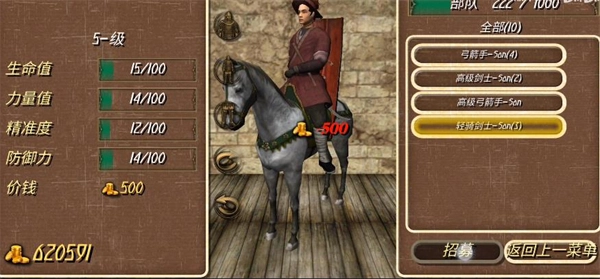 3、酒馆招募结束后需要间隔一段时间才会刷新,但存在一个小漏洞:进入城镇后退出酒馆,招募列表就会立即刷新。利用这个技巧,金币几乎等同于士兵数量。酒馆里的高级士兵招募成本太高,不建议选择;建议去募兵处招募基础士兵,每个仅需五块钱,只要有就尽量招募——搭配10个教练,这些基础士兵很快就能升级为高级兵种。