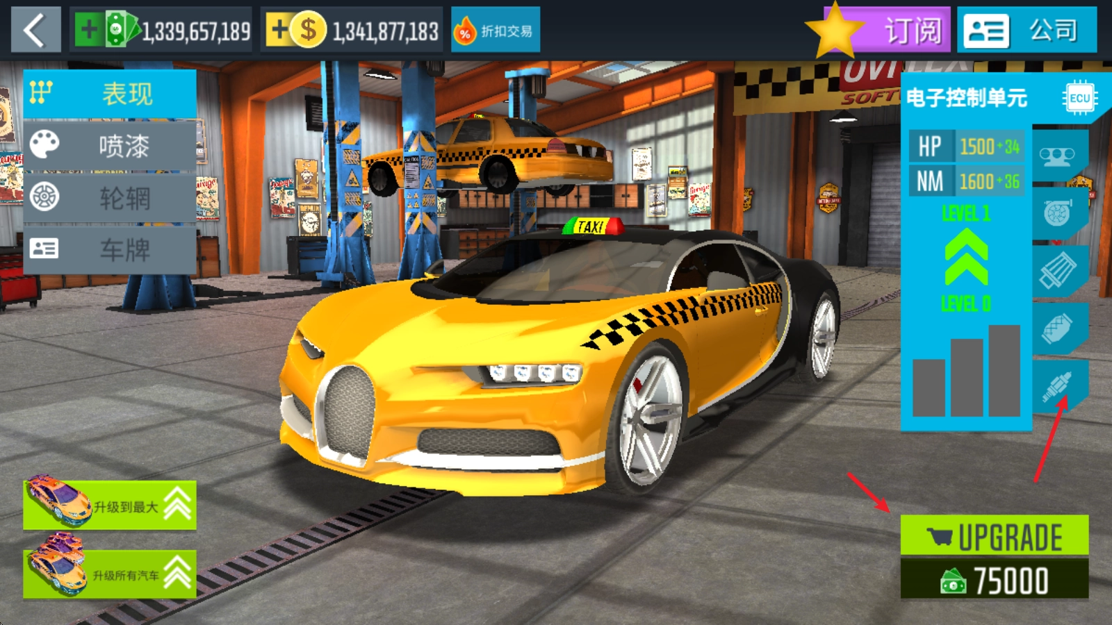 2、如果对汽车的性能不够满意,也可以通过升级部件的方式来提升,让你的出租车拥有更快的速度,完成任务也更有效率。