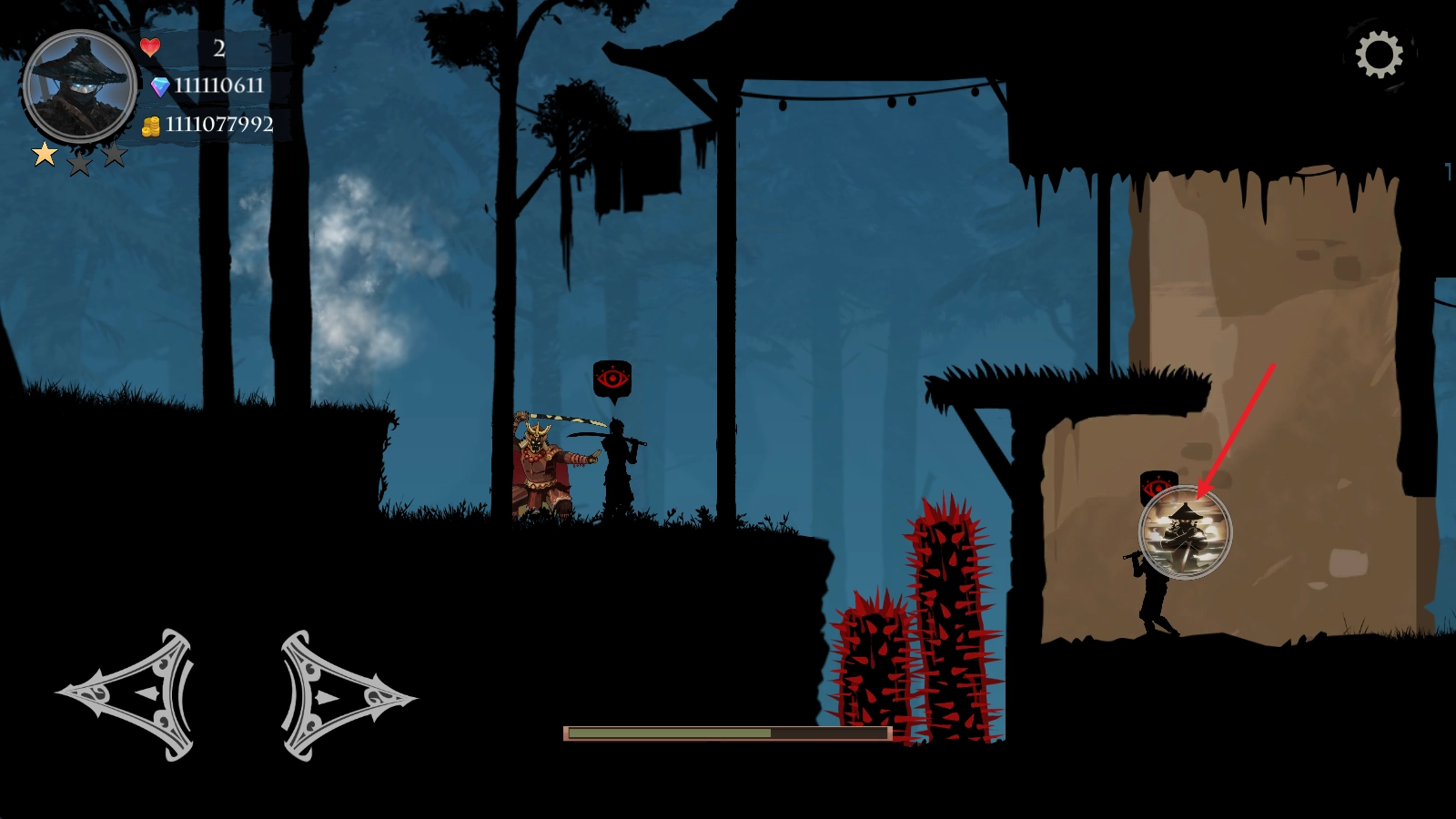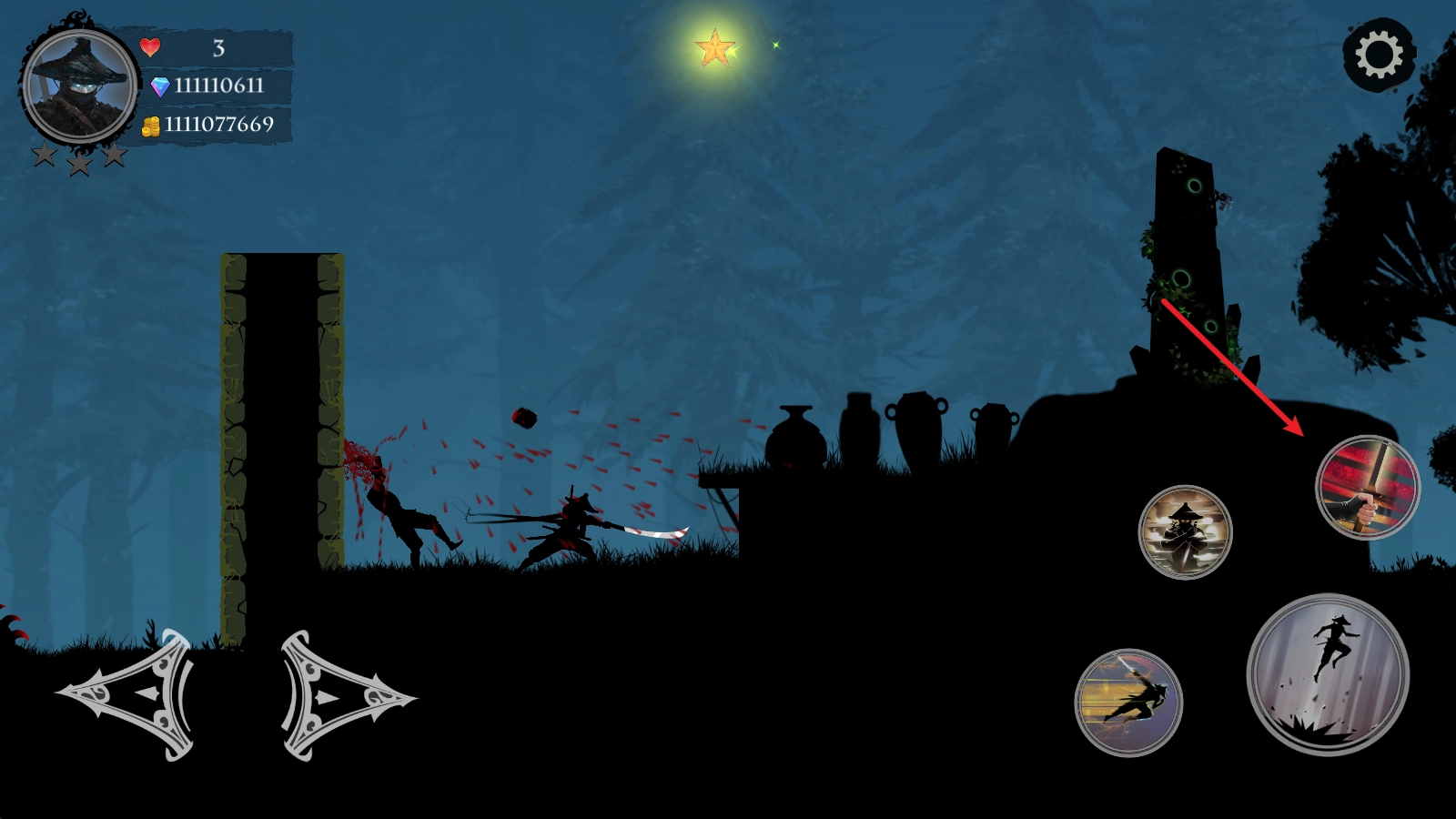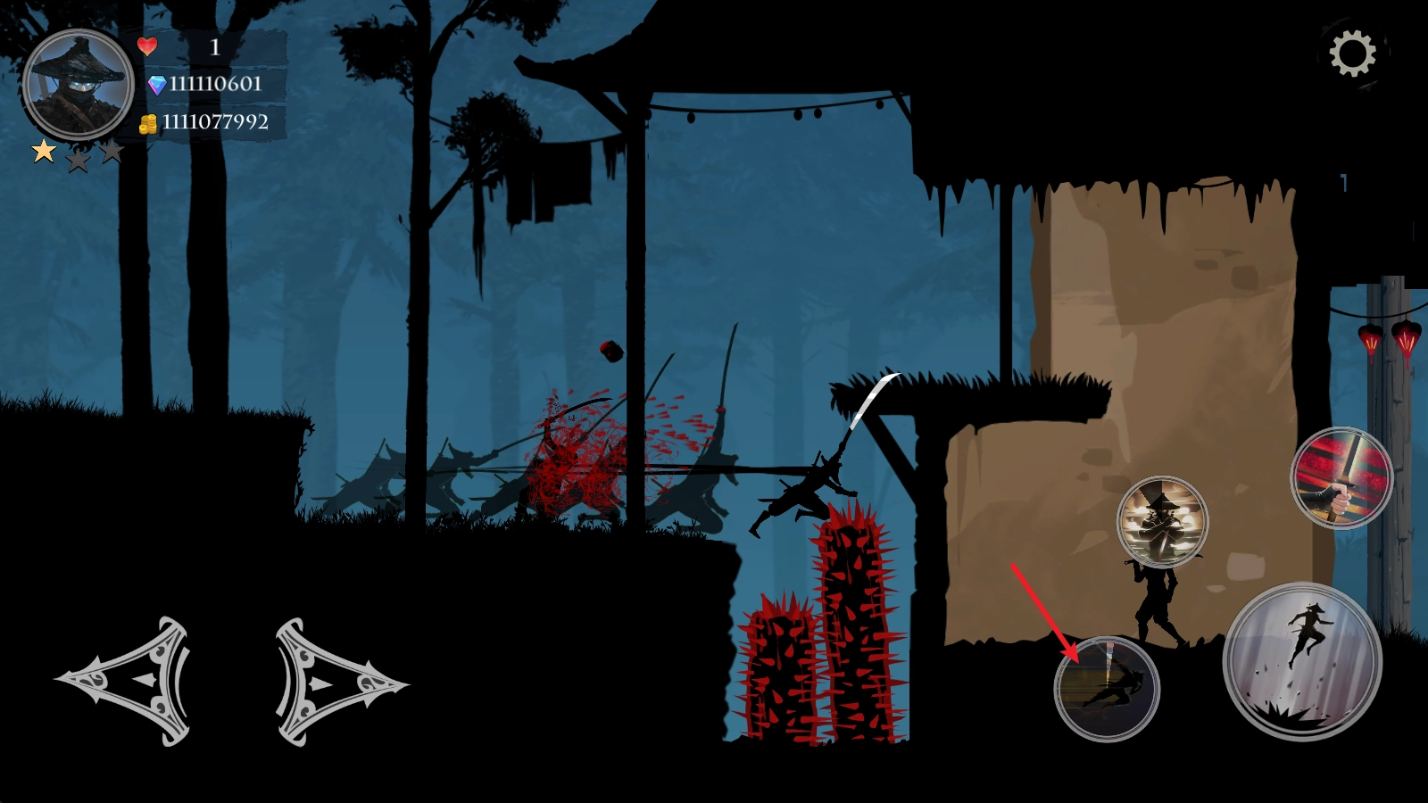 3、当我们接近敌人时,点击右侧的攻击按钮,就能用武士刀发起攻击。