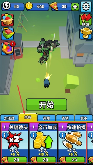 4、挑战尸王之前,先给主力角色的属性做升级,搭配上合适的辅助,再借助攻速加成的效果,就能轻松应对那些强力敌人了。