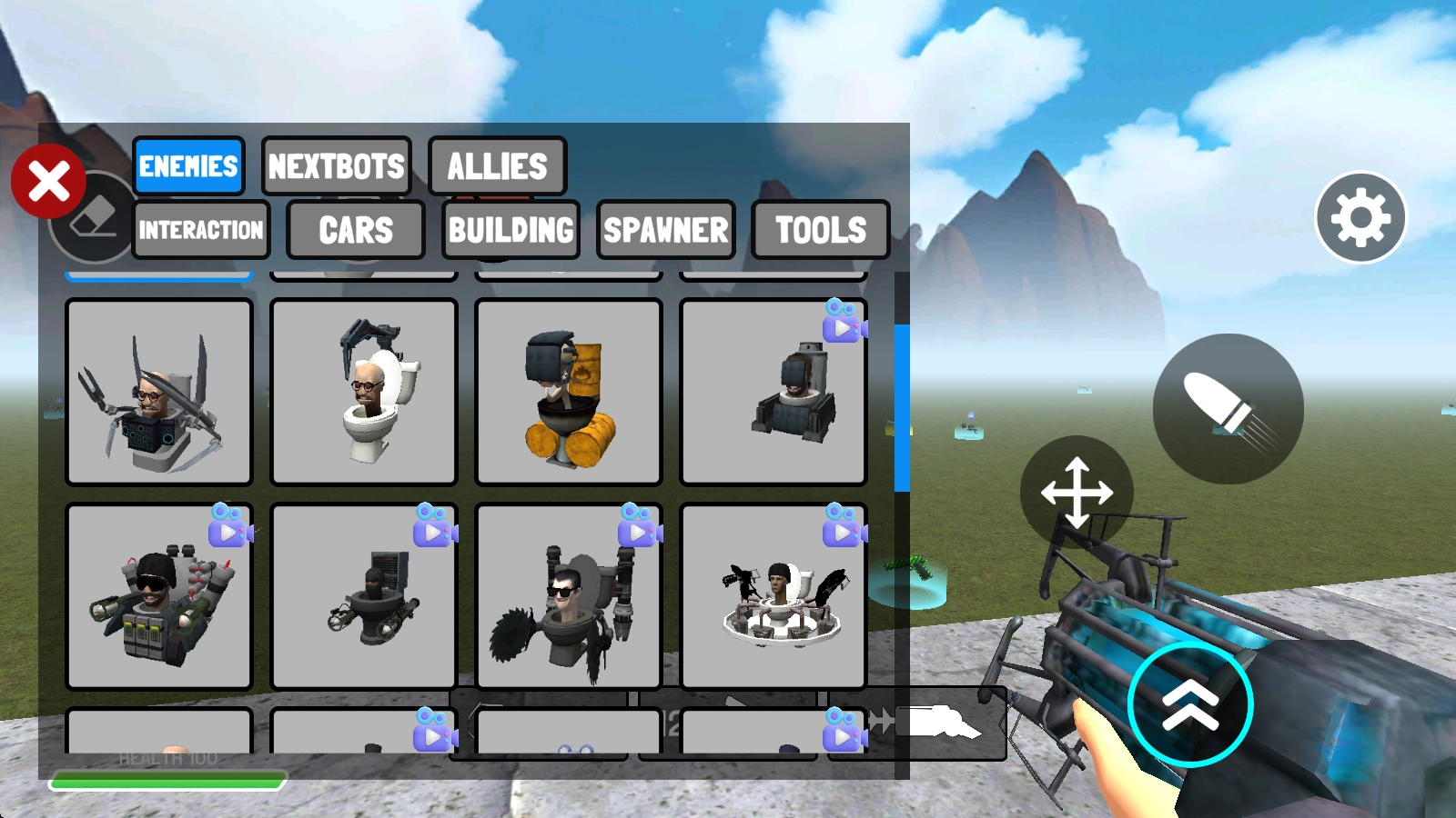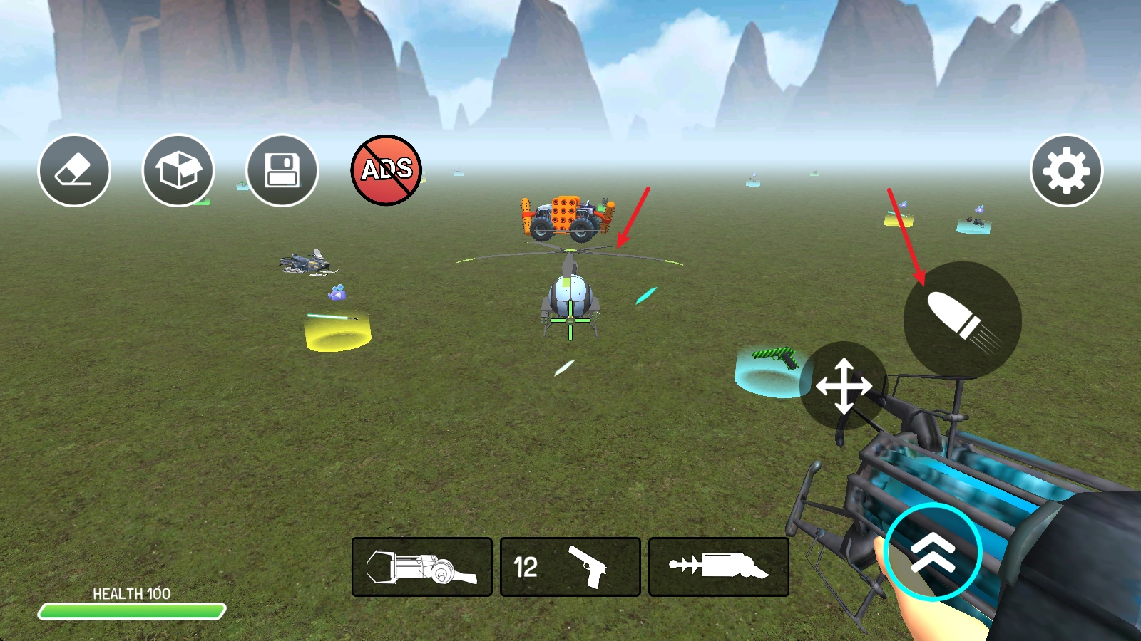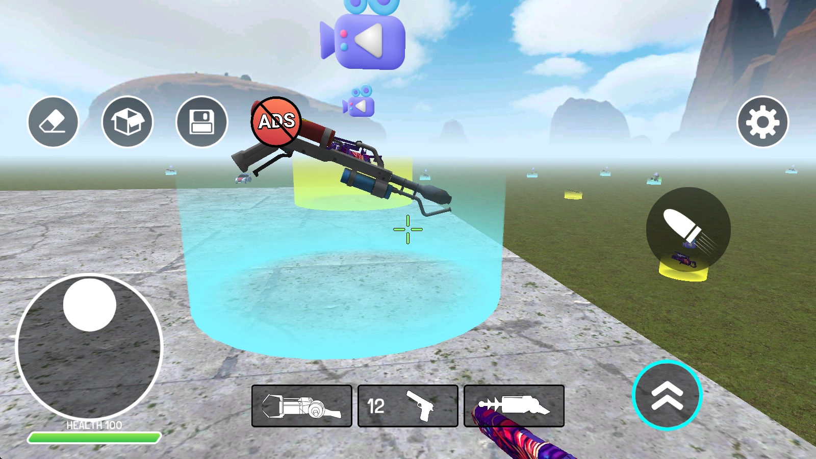 在游戏里,点击左下角的首个武器并发射,即可在场景中添加敌人。