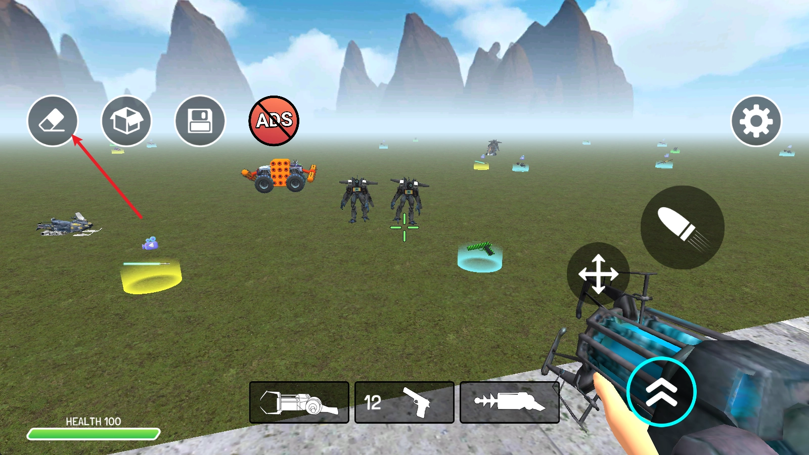 6、点击左上角的橡皮擦按钮,能够清除场景里所有的敌人。