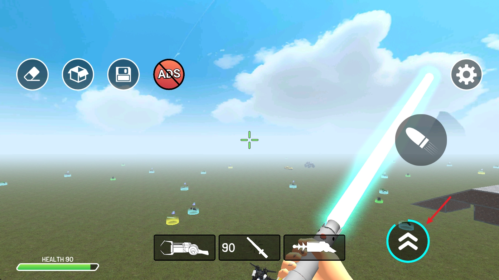 7、点击右下角的箭头能够实现跳跃,长按该箭头则会消耗能量进行飞行。