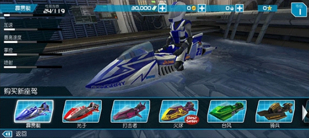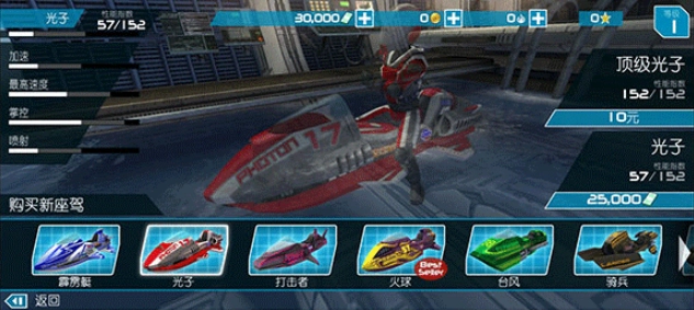 游戏里有10种不同类型的炫酷快艇可供使用,它们各有不同的性能和操作体验,能为你带来不一样的驾驶快感!