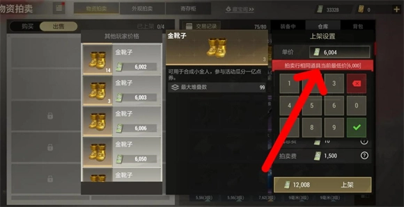 1、低价售卖时,我们能在交易行上架环节查看待售货物的价格与数量。同一价格对应固定数量,若数量偏高,可通过调整为个位数来改变自己在拍卖行货架上的排序位置。