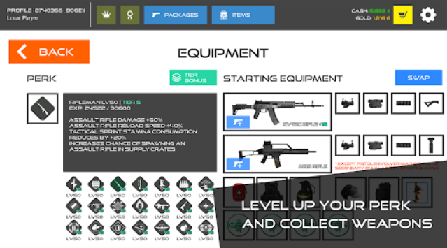 2、冲锋枪、突击步枪、狙击枪、霰弹枪等各类枪械均可解锁使用,你可以自由搭配自己的武器栏。