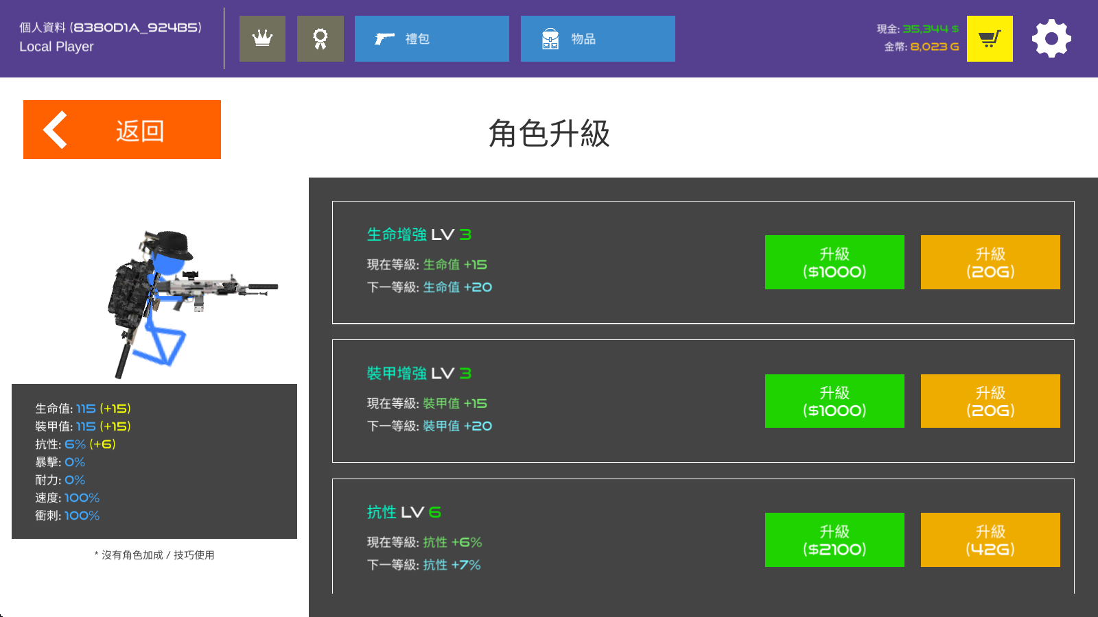 2、在这里,能够提升人物的生命、装甲、抗性等各项属性。