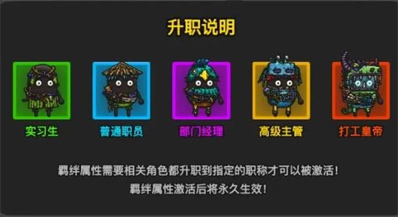 4、经理的升职需要足够数量的信物,经理职位依次划分为实习生、职员、经理、主管、皇帝,对应的简称分别是绿、蓝、紫、黄、红。当经理拥有10个信物时即为绿色职位,从绿色升阶到红色职位所需的信物数量依次为30个、90个、180个、360个。