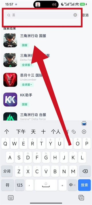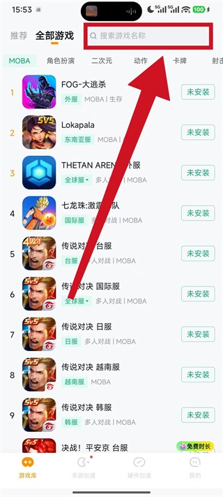 2、在游戏页面的顶部搜索框中,输入要手动添加的游戏名称,点击搜索。
