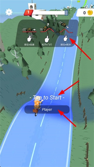 1、跟着指示来操控自行车例如按住可以加速、松开就会飞行;