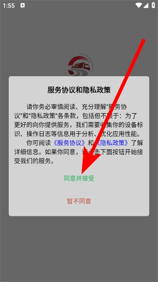 1、启动信运达货主端应用,点击“同意并接受”按钮,进入登录页面。