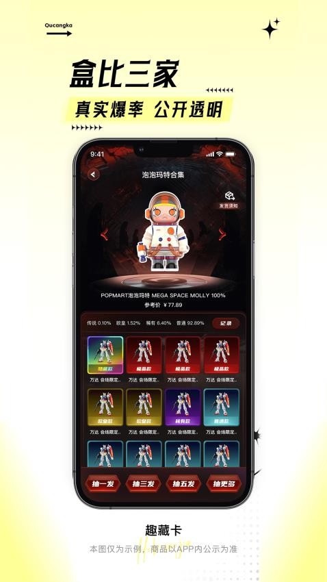 1、限量盲盒专区每日上新百套设计师联名款卡包,里面包含烫金工艺卡、亲笔签名卡等珍藏级卡片,每套都带有专属独立编号和防伪验证码。