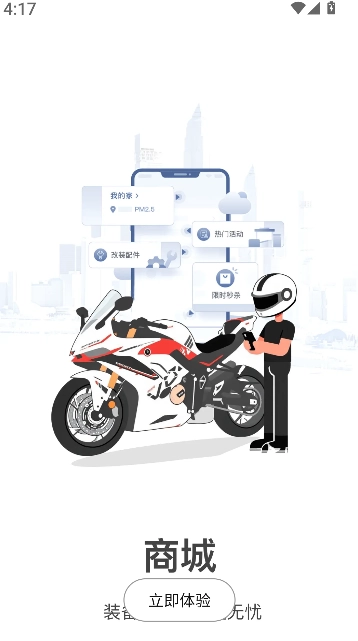 专属商城与设备升级服务:您可轻松浏览无极摩托车官方商城及精心挑选的周边产品。原厂零件与时尚装备支持一键直达,为您的爱车及骑行生活增添更多精彩。