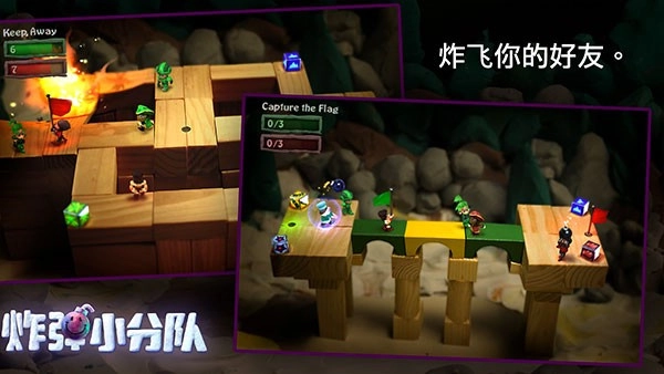 《炸弹小分队》是一款快节奏的物理多人在线对抗游戏,核心玩法是操控卡通角色在布满爆炸与格斗元素的地图中投掷炸弹,将对手炸飞出局;同时需要留意自身投掷的炸弹也会造成伤害,因此得精准躲避所有炸弹。游戏还设有多样的场景与玩法模式,比如夺旗、冰球、慢动作死亡竞赛等迷你游戏,并且支持本地多人游玩和在线联机,玩家可通过联机提升自己的排名。