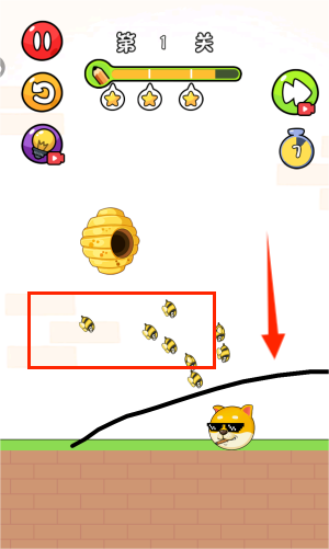 2、你需要画线,帮助小狗躲避蜜蜂。