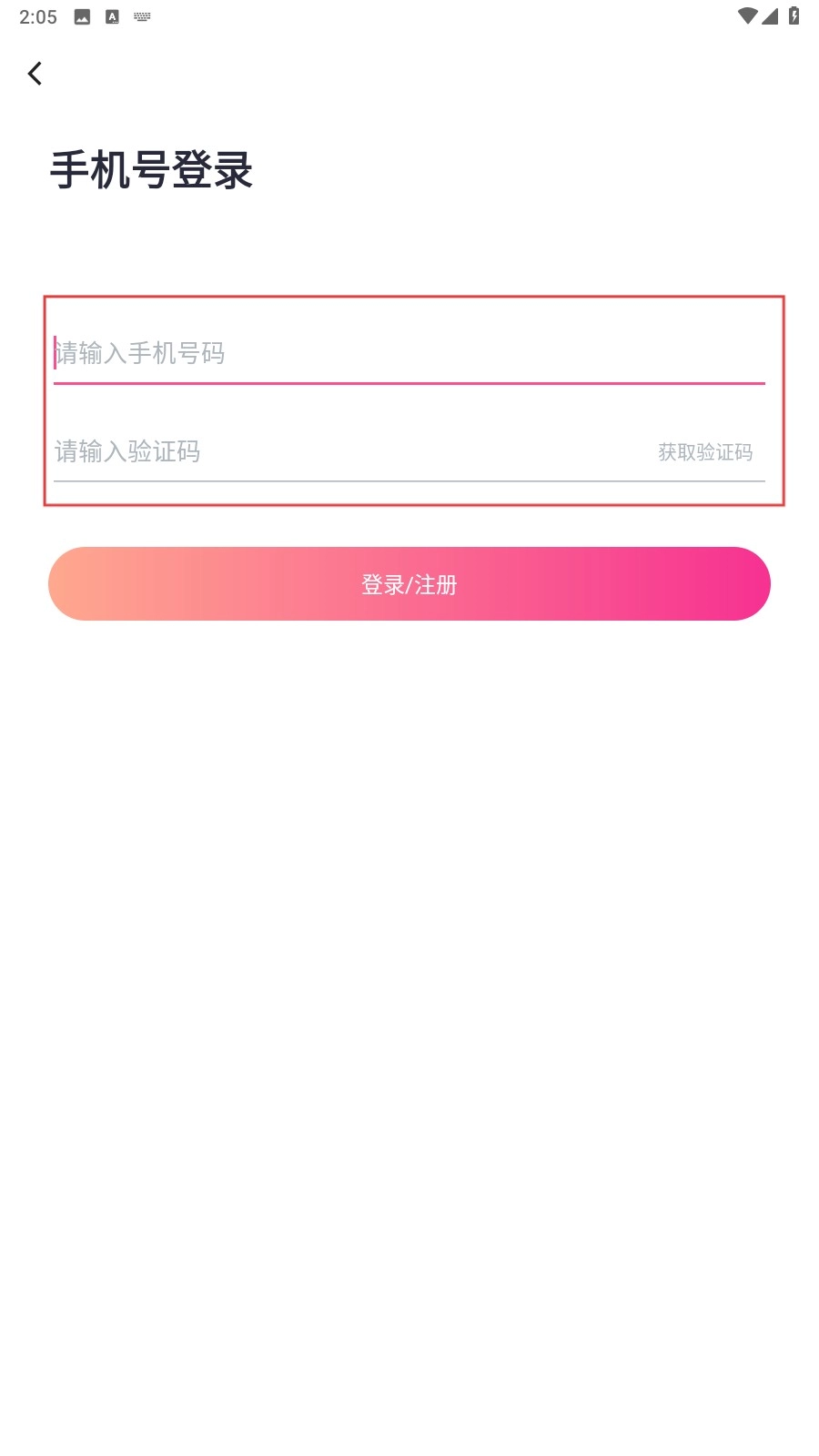 3、在手机号登录页,依次输入【手机号码】【验证码】,点【登录/注册】完成操作。