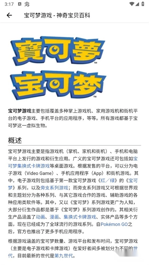 5、游戏列表:宝可梦的游戏介绍;