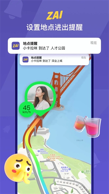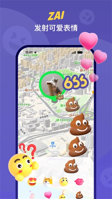 可以直接在地图上发起聊天;听说用ZAI收发消息,就能及时更新定位哦!