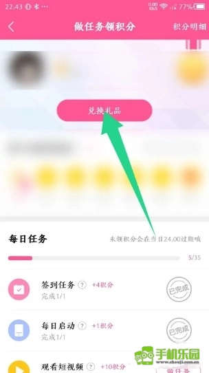 3、在任务中心的页面内,点击上面的“兑换礼品”选项。