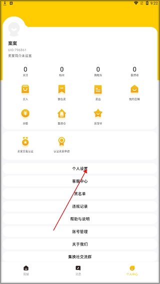1、安装好集换社,进入软件主页面,点击个人中心。