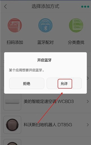 在“开启蓝牙”窗口中点击“允许”按钮