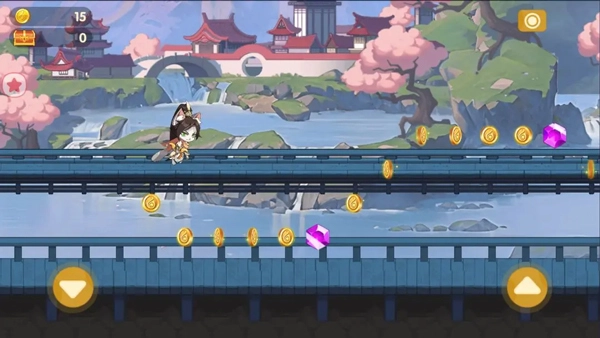 - 玩家通过滑动屏幕来控制角色跳跃、滑行和攻击,以躲避障碍物和敌人。