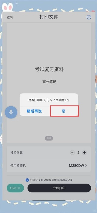 2、在打印页面,您只需长按麦克风按钮,接着清晰地发出指令:“至像同学,请打印第2页、第3页、第5页和第7页,并且打印两份。”如此一来,您就能轻松完成复杂的打印任务,不用进行繁琐的操作。