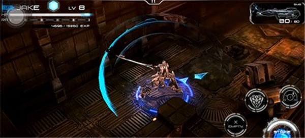 游戏里常用的武器多为近战类型,男主角操控的机甲配备了剑,其攻击模式会随着挥剑次数的变化而有所不同。常规的砍击动作伴随蓝光时属于普通攻击,而当短暂停顿后机甲周身浮现紫光,此时发动的便是重击。