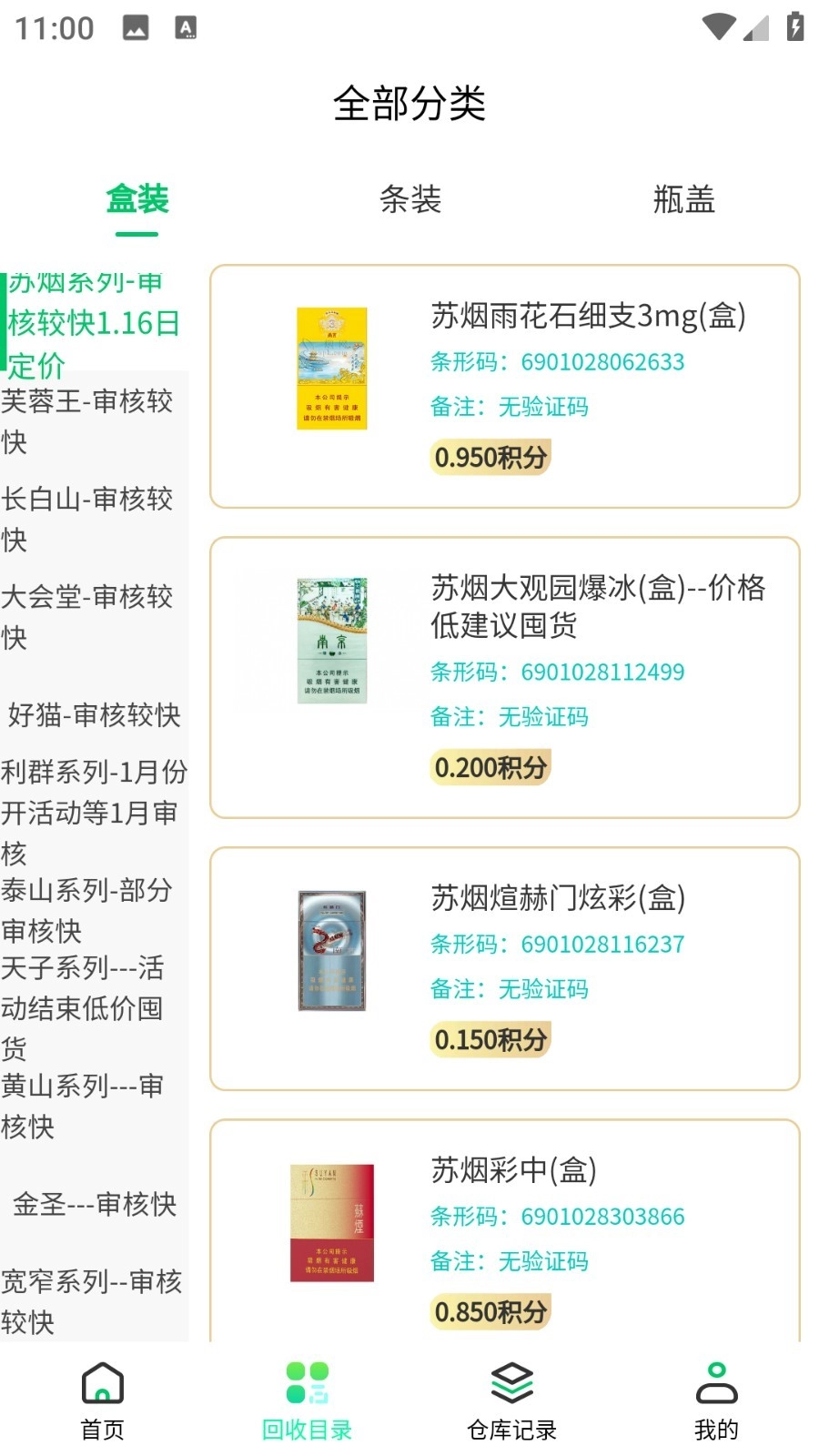 3、 动态积分系统:实时更新烟盒回收积分价目,根据市场行情调整兑换标准,确保回报公平透明。