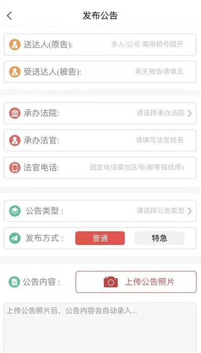 3、发布公告:进入发布页面,填写相关信息完成公告的发布申请。
