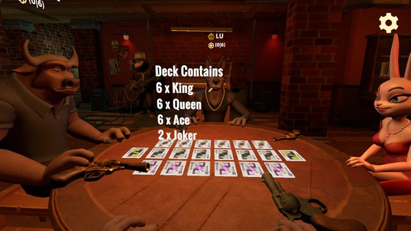 《骗子酒馆》是一款策略益智游戏,玩家需轮流出牌,出牌前要声明所出牌型的张数,下家可选择质疑或相信。若质疑成功,出牌玩家就得接受惩罚——拿起手枪对准自己射击,空弹则代表安全。游戏不仅考验运气,还充满了玩家间的勾心斗角,大家需要凭借判断力辨别真假话语,还有多样的游戏挑战等着玩家参与。