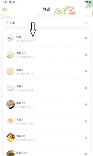 你可以在顶部的搜索框里查找自己想了解的食物热量,比如我们以鸡蛋来举例说明。