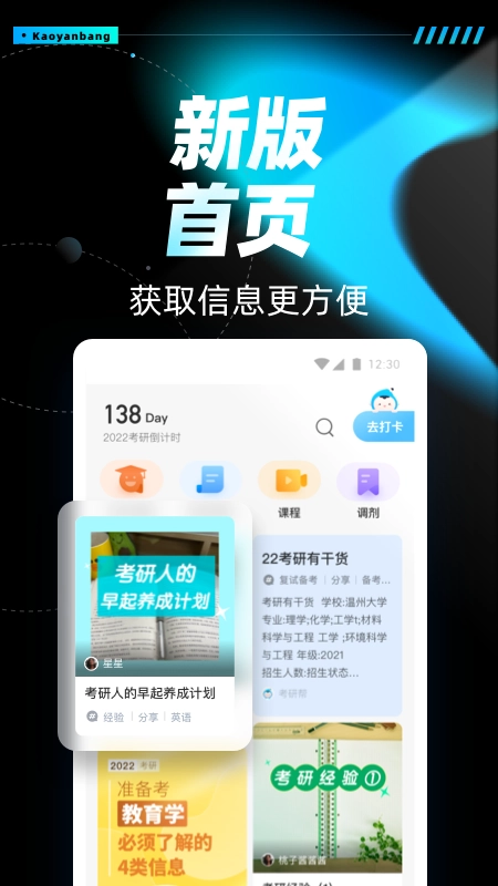 权威资讯板块:为用户提供考研相关的最新政策解读、院校招生简章等官方权威信息,保障用户获取到的内容精准可靠。