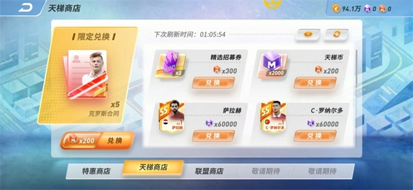 在天梯赛的排名结算奖励中,玩家可以通过商店兑换高品质球员。即使是普通玩家,只要慢慢积累,也能收集到自己喜欢的球员。