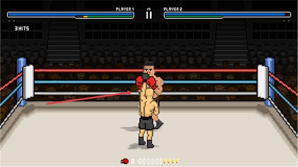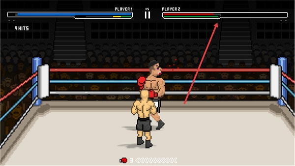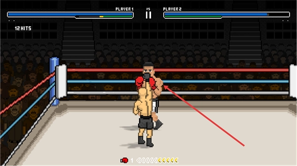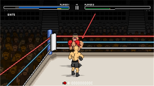 1、在拳击场中操控PLAYER1,向PLAYER2发起攻击,积累HITS数。