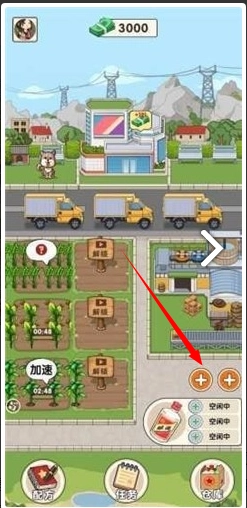 1、我们点击游戏右下角如图所示的“+”按钮,即可打开新界面。