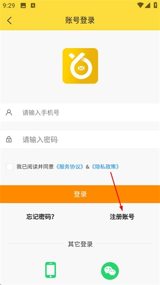 3、在账号登录页面找到并点击注册账号选项,即可进入注册页面。