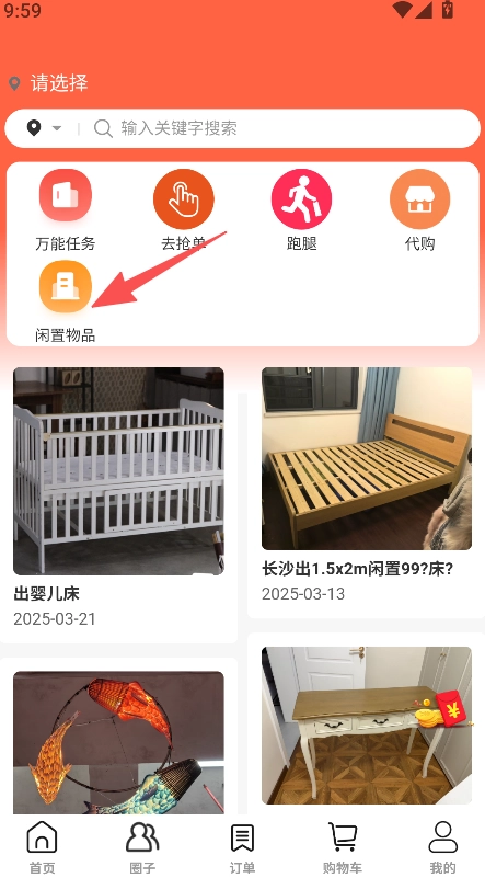1、进入首页后,点击“闲置物品”选项,即可进入对应的页面。