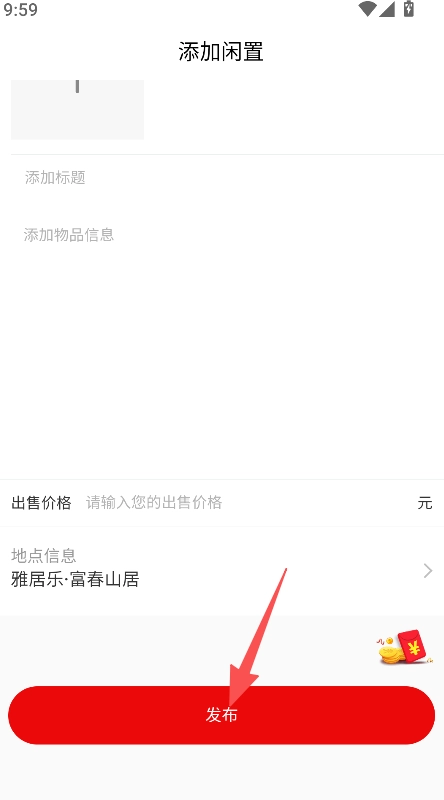 3、填写物品标题、信息等内容,选择地点后点击发布完成操作。