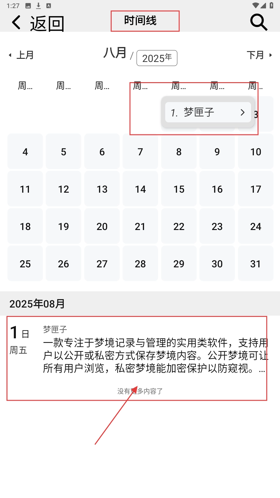 4、发表后,在【时间线】页,可查看当前时间发布的“梦匣子”记录及详情。