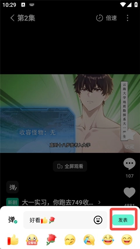 2、竖屏播放非常的便捷,支持上下滑动切集,倍速播放更加方便