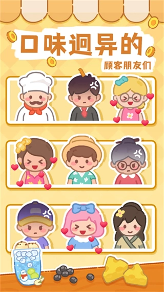 3、经营成长节奏舒适,从解锁第一种原料、制作第一杯奶茶,到拥有丰富菜单、打造网红店铺,每一次进步都能收获满满的成就感。