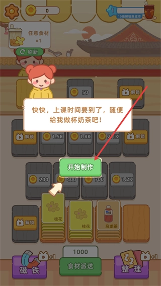 1、按照提示点击“开始制作”按钮,着手制作奶茶,此过程会消耗相应的食材。
