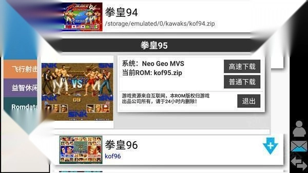 2、如果我们要玩拳皇95的话,那么我们可以在对打格斗分类里面找到,然后点击高速或者普通来该游戏;