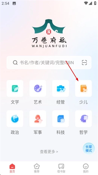 1、在万卷府抵首页点击少儿分类选项,进入少儿图书列表页面。