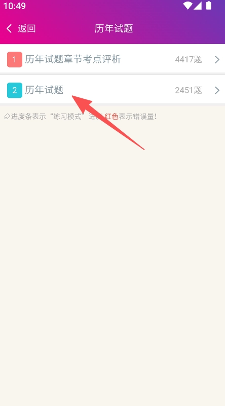 1、启动软件后进入历年试题板块,查看历年试题的章节考点评析以及历年试题分类情况。