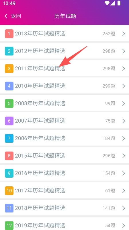 2、在历年试题分类中选择对应年份的试题精选,进入具体的试题页面。