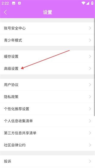 3、在【设置】页面中,找到并点击【高级设置】选项,进入对应设置界面。